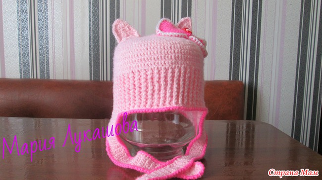 Шапочка для девочки 10 месяцев. Связана столбиками с накидом и резинкой