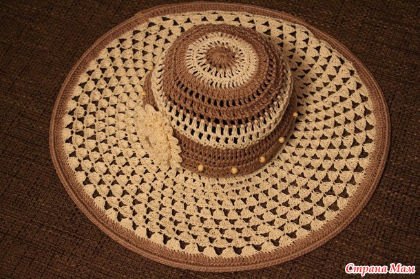 Связала новую шляпу для мамы. Пряжа Камтекс- лен 100% - примерно половина моточка из 100 гр - 50 гр и лен с бамбуком - тоже ушло пол моточка - 50 гр. Впервые вязала из льна, очень понравилась пряжа и как выглядит готовая шляпа. Украсила деревянными бусинами.