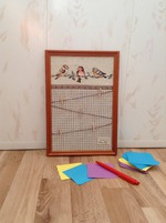 Оформила в виде доски желаний. Теперь свои желания и хотелки буду писать на листочках и на прищепочки вешать на доску. А ведь можно не только хотелки, но и творческие планы на месяц вывешивать. И как же будет приятно по мере осуществления снимать листочки с доски и вешать новые.