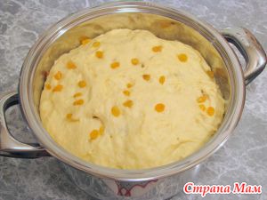 Изюм замочить в теплой воде на 10-15 минут, затем всю воду слить.