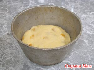 Форму смазать маслом, выложить тесто на 1/3 высоты формы.