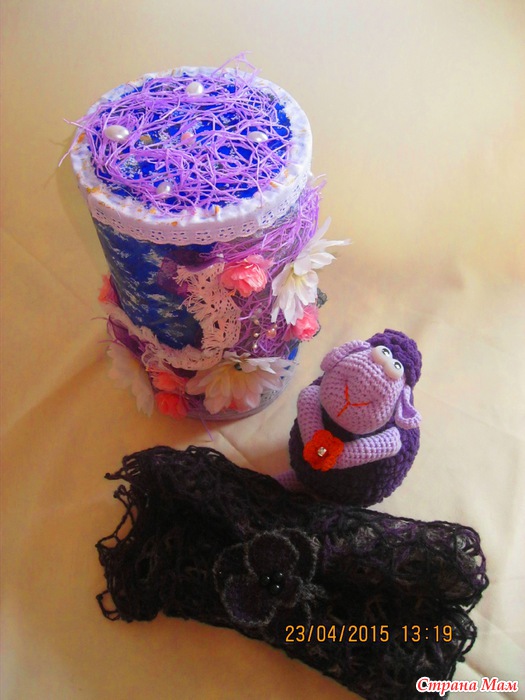 Палантин- ниточки кауни блек-лила. расход 70гр (размер 60см на 2м) крюч 3.25