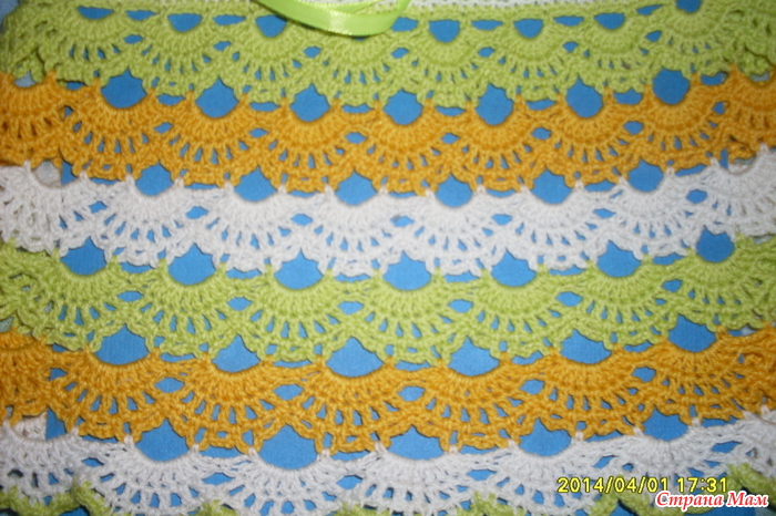 Не загружает больше фото (лимит). Основа юбочки филейная сетка, а на нее навязываются рюшики, завтра добавлю!