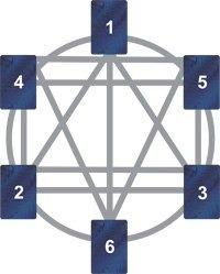 Шесть карт раскладываются по лучам шестиконечного «щита Давида».