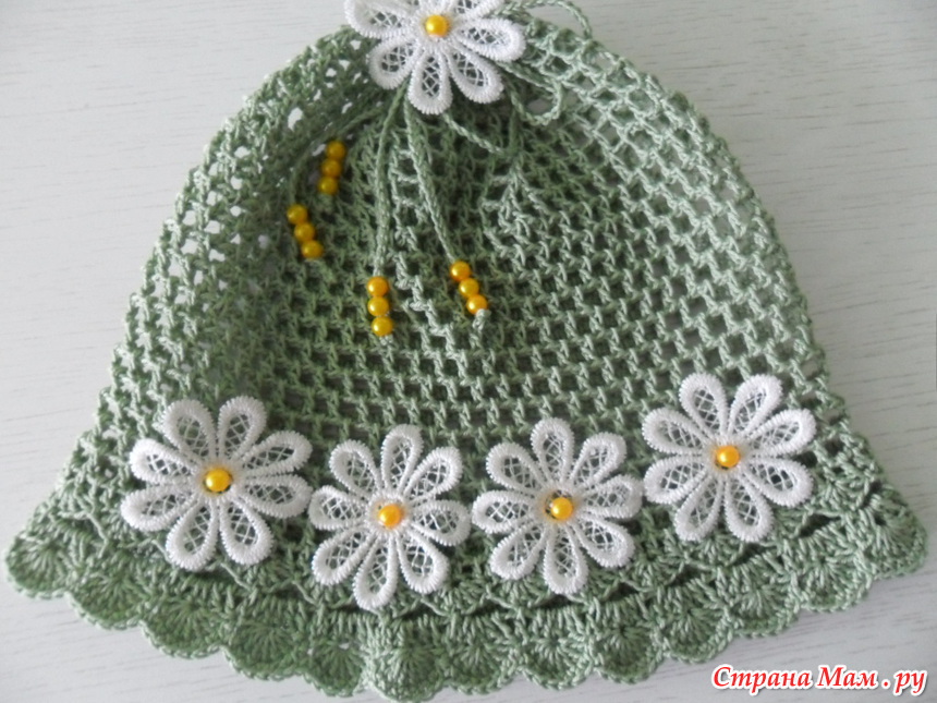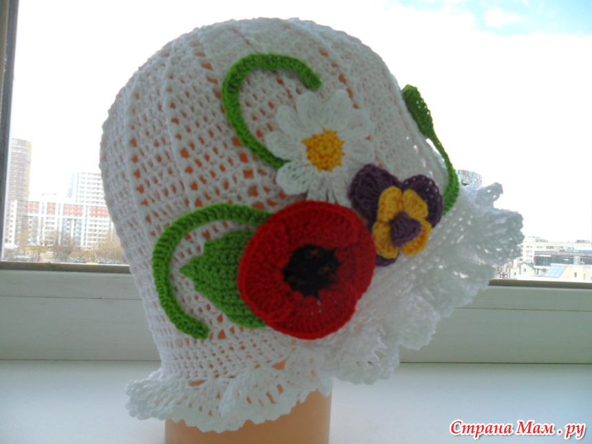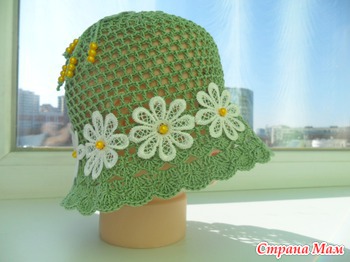панамка "Ромашки".. чисто филейная клеточка.. ромашки кружевные купила уже готовые.. в швейном отделе..
