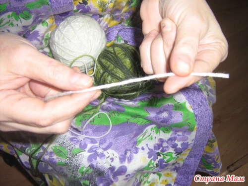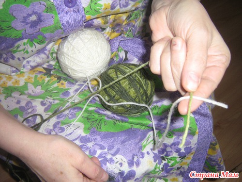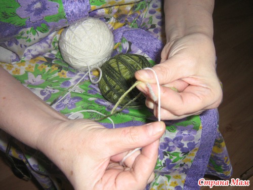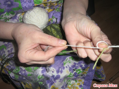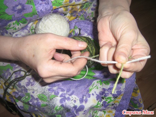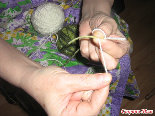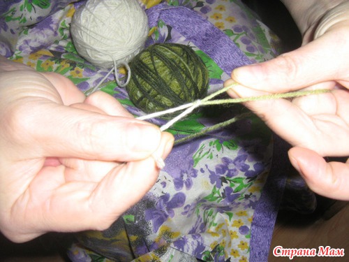 Девочки, может быть кому пригодится. При вязании часто приходится связывать нити. Хочу поделиться как это сделать, чтобы узел был аккуратным и очень тонким. Меня научила мама, которая всю жизнь проработала на текстильном комбинате. Берем концы нитей, которые необходимо связать. Первую кладем на указательный палец, чтобы кончик смотрел влево, вторую нить кладем сверху, конец смотрит вправо. Обе нити придерживаем большим пальцем левой руки. Обе нити лежат на указательном пальце крест накрест. Берем нить, которая лежит снизу и обматываем ею, прокладывая нить по большому пальцу, обе нити по часовой стрелке. Затем, этой же нитью еще раз обматываем вторую нить, ту которая лежит сверху и смотрит вправо. После этого берем нить, которую обматали по часовой стрелке, и подгибаем в петлю, которая образована на большом пальце. Придерживая оба конца нитей, растягиваем их в разные стороны. Узел готов. Конечно, сразу не получится, но потренировавшись можно научиться.
