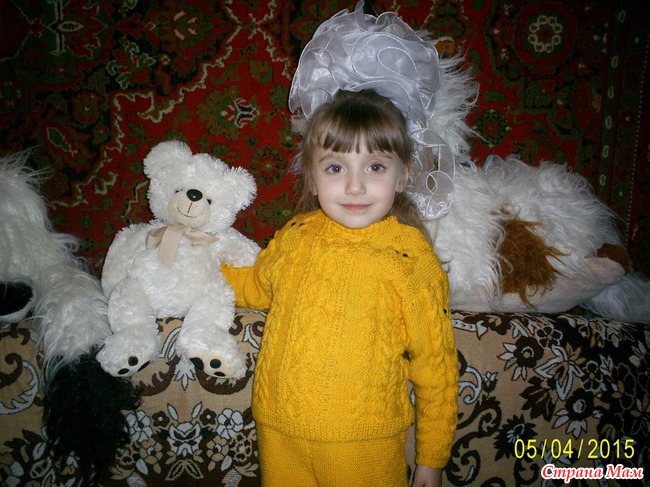 Связался у меня костюм "Совята". Вязала спицами №3, акриловыми ниточками.