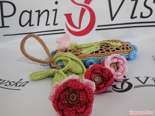 Розы- подвески, как и весь чехол, связаны нитью Yarn Art TULIP, крючок №1.