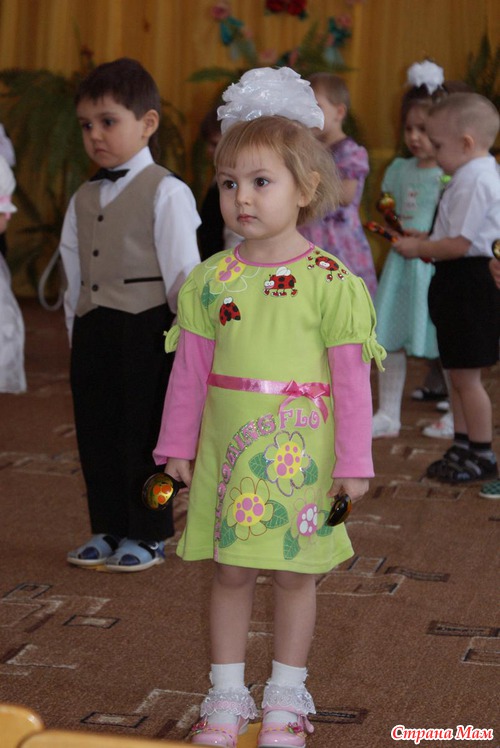 и я почему то подумала что на этот утренник оно не подойдет, какое то уж больно Новогоднее, и купили платьеце новое(весеннее с божьими коровками, цветочками).
