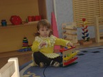 А ведь мы ходим на эти занятия уже 2-й год. В прошлом - все было замечательно: общалась, играла, ходила с желанием. А в этом.... Конечно, здесь и моя вина. С прошлого года детки ушли в садик, пришли новые детки. Сменился преподаватель. Да и кризис заставил нас сократить занятия до 1 раза в неделю, а то и реже.