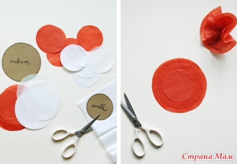 2. Из бумаги вырезаем круги 3-х размеров – 5, 4, 3 см в диаметре.