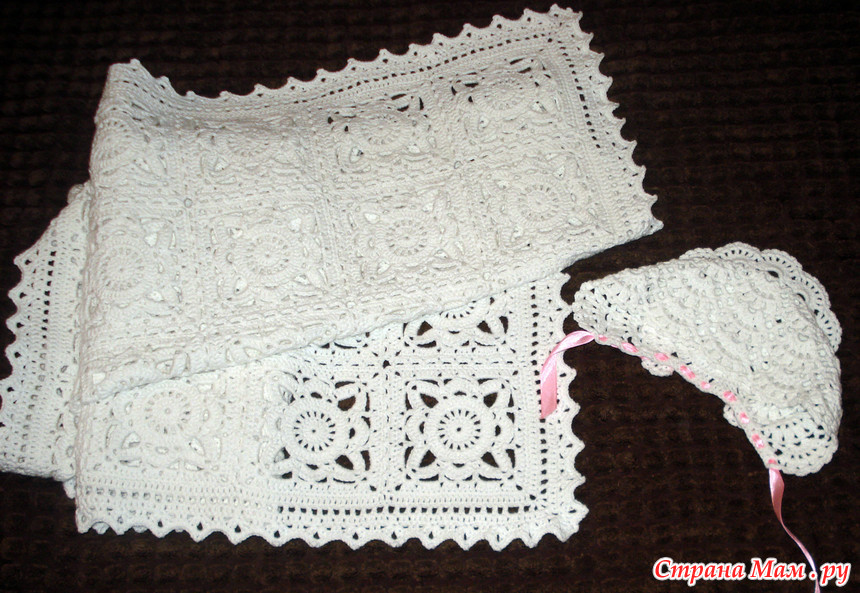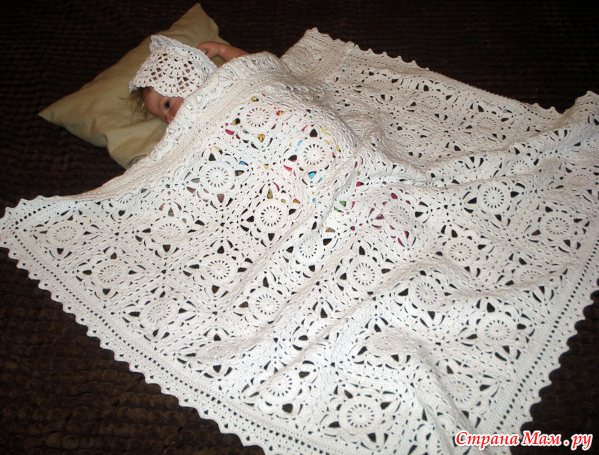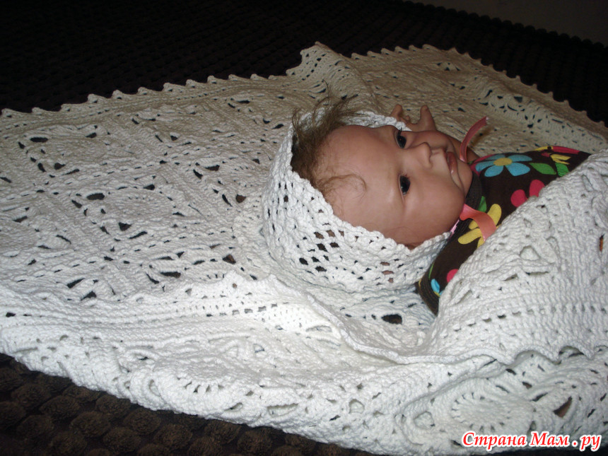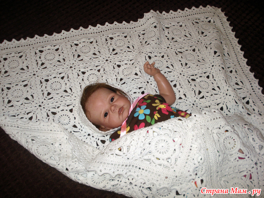 Вот и я успела связать плед на выписку для новорожденной девочки, которая вот-вот должна украсить своим появлением этот мир