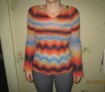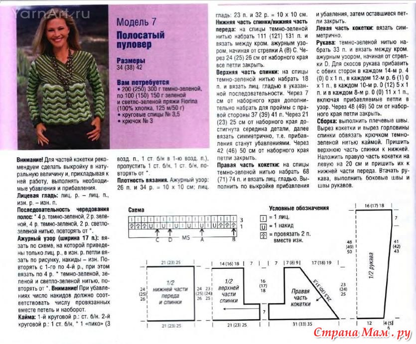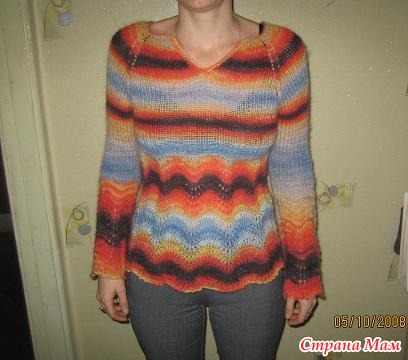Специально для Святулька нашла схему, по которой я вязала низ кофточки. Вообще-то, вязалась кофта сверху на круговых спицах, но идеей послужил полосатый пуловер: