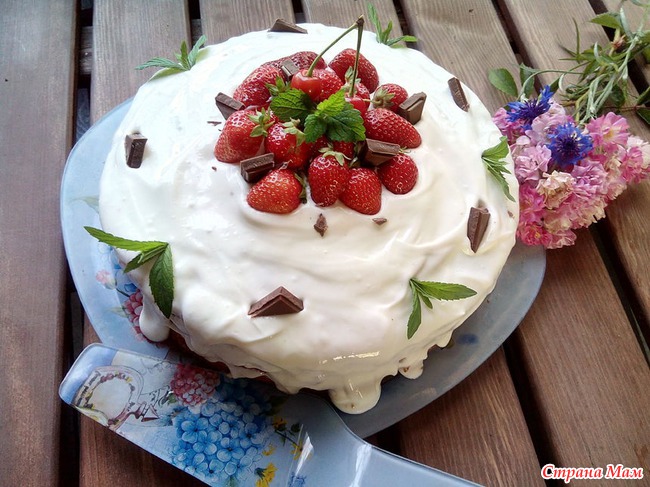 И сейчас моя любимая клубничная пора, на грчдках спеет клубничка, сочная, ароматная, сладкая, вот и украшаю тортики, легко, быстро, красиво а главное вкусно!!!