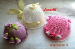 Связались у меня вот такие три шапульки для трех очаровательных сестричек)))