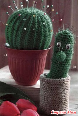 Совет: чтобы кактус не переворачивался, подвесить грузик. Вставить в горшочек.