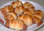 После этого тесто смазывают сверху яйцом и посыпают семенами кунжута. Сосиски в тесте выпекают 10 мин при температуре 180 градусов до золотистого цвета (у меня выпекались минут 30!).
