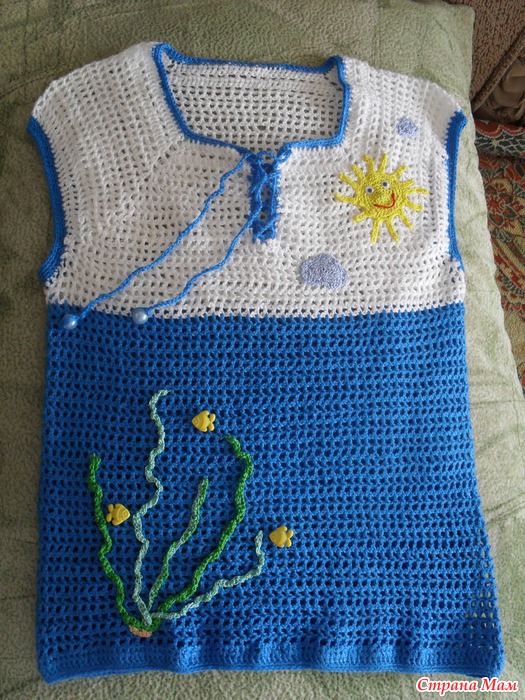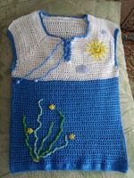 Такая вот не затейливая маечка связалась внуку! Пряжу использовала пехорка кружевная! крючок 1,1а вот сколько ушло подсказать не смогу так как вязались еще панама и бандана!