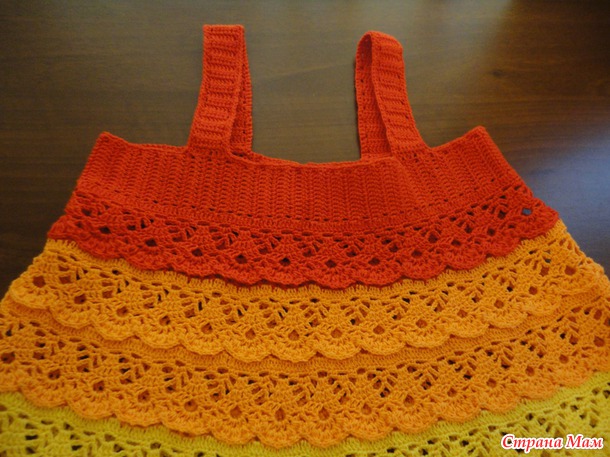 Связала для дочки сарафанчик. Нитки-Пехорка Ажурная, крючок 1,5.