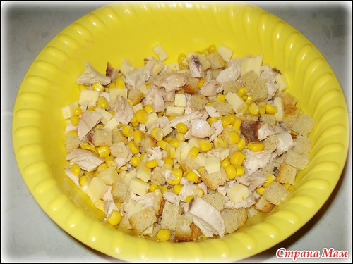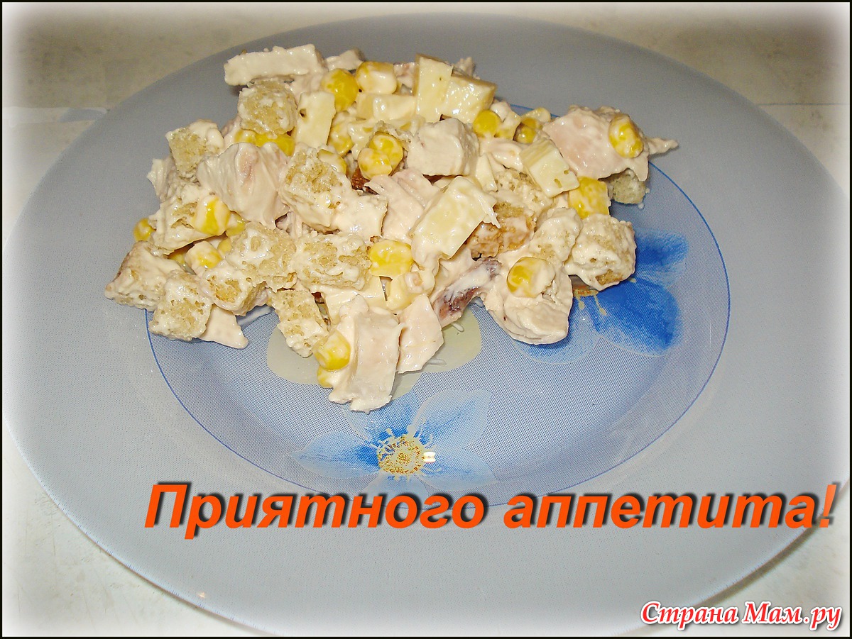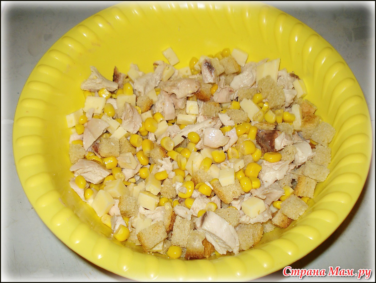 Салат с курицей и сухариками