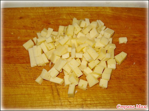 Режем сыр на небольшие кубики.