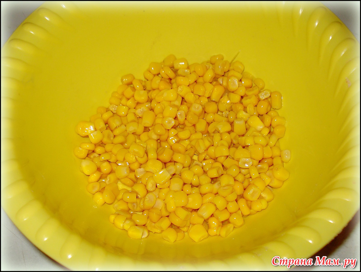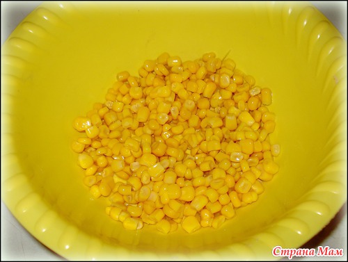 Берём полбанки консервированной кукурузы.