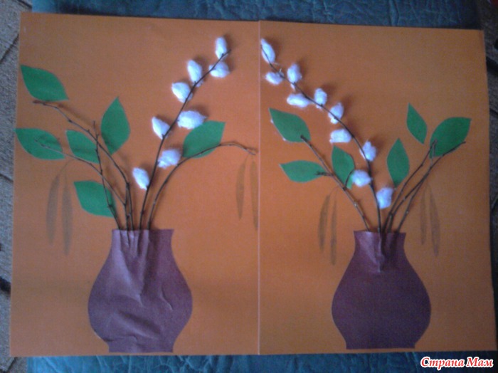 Да, нам тоже только 3 годика, ну вообщем сами не делали, ну активное участвие принимали, листики, вазочку, веточку приклеивали, выркзать она просто еще не умеет