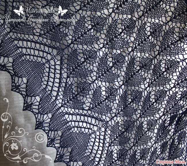 Размер шали: 190 см по ленточке, 94 см по центральной петле.