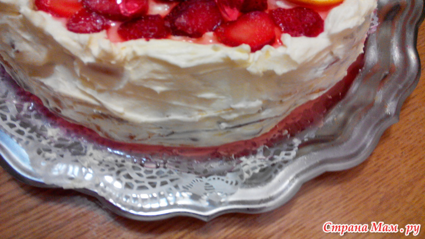 Всем привет. Вот какой получился торт. Только мне кажется я фруктов мало положила. На вкус конечно. супер и мужу очень понравился торт. Он не выдержал и ночью съел огромный кусок. И еще желе не застыло почему то на торте. А вот в силиконовых формах норм. застыли!;-)Спасибо большое за рецепт Janna Nikol!!!