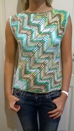 Топ связан, получился точно такой как на этом фото ( здесь размер 46) ну, немного больше, соответственно)