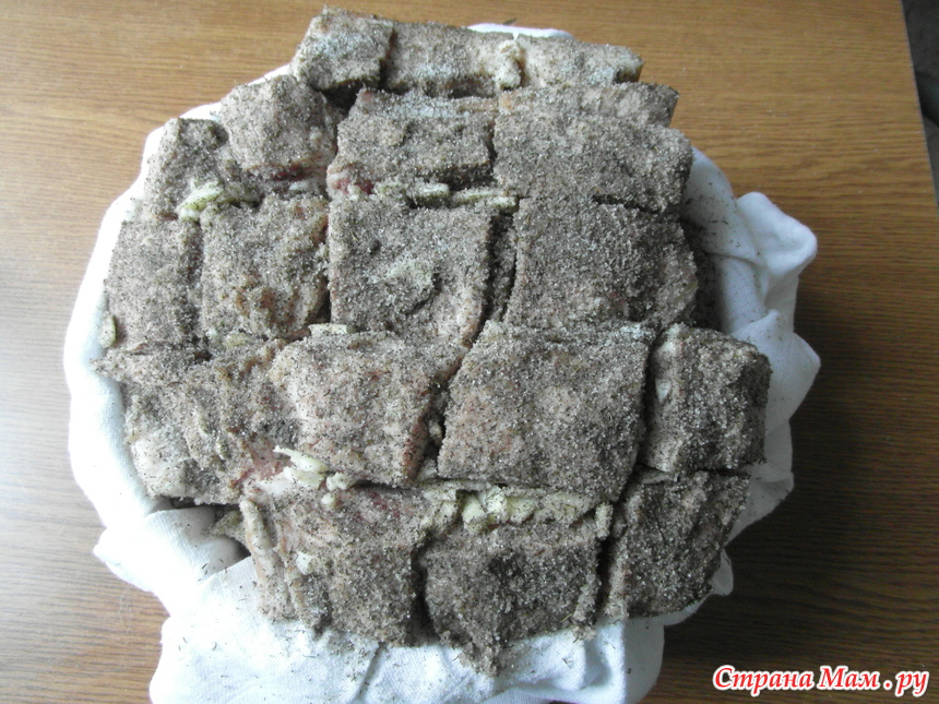 -каждый кусок сала надрезаем до шкуры