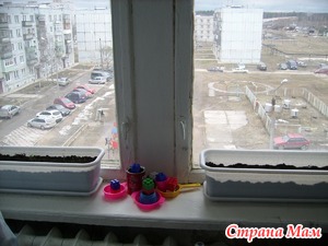Поддавшись весеннему настроению и мамином влиянию прикупила я пластмассовые контейнеры, земли и посадила на подоконнике укроп с петрушкой и зеленый лучок - и витамины будут, и детям радость ухаживать за растениями. Лучок пока еще не дал всходов - сидит в земле, а укроп с петрушкой стали по-тихоньку выклевываться: Позже, когда совсем потеплеет, посажу на балконе цветочки. А это младший сын, увидев, что я сажаю семена, решил посадить цветы из конструктора: садовник юный.