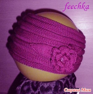Вот такой подарочек. Сиреневого не нашлось, розовый не подошел, пришлось цветочек делать такой же, как сама повязка. В жизни смотрится намного лучше, на фото не передались ни цвета, ни форма толком... Надо все-таки почитать инструкцию к фотоаппарату...
