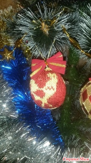 Привет всем!!! Совсем скоро придет Новый год. Уже наверное все украсили дома и нарядили елочки. Мы тоже на днях с детьми достали елочку и начали украшать. Среди елочных игрушек нашла вязаные шарики прошлогодние. И пришла мне в голову мысль, что хорошо бы связать такой шарик с петушком. В интернете схем не нашла, сижу сама сочиняю. К вечеру будет готова. Завтра свяжу.
