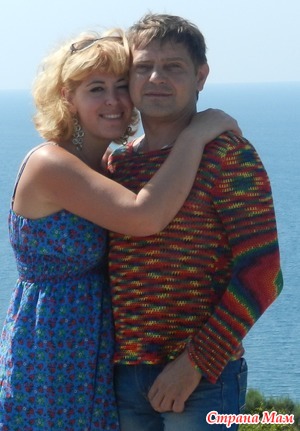 Захотелось милому футболочки яркой и чтоб не было такой ни у кого. Долго искали подходящий вариант ниток. Начала вязать, как-то не пошло, то узко, то рукава не так получается. Рукав вязала сверху (в дневнике есть ссылка на мастер класс), распускала 5 раз. У меня ушло 4,5 моточка Anna print. Вязала крючком 1,6 смещенной сеткой полустолбик с накидом. Когда же я ее закончила, восторгу не было предела.