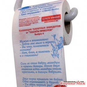 Инструкция по пользованию туалетной бумагой (реальная ) Туалетная бумага(арт.11315509651) в дальнейшем -изделие, предназначена для удаления остатков процессов дефекации с внешнего края заднепроходного отверстия, прилегающих к нему участков кожи, локально централизованного на данном участке тела волосяного покрова(в дальнейшем - место использования). ПРИМЕНЕНИЕ: 1. Тщательно ознакомиться с настоящей инструкцией. 2. Читать далее»