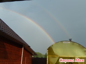 После ливня я первый раз увидела чтобы на небе было две радуги. Т. к. фотик всегда со мной то и фотографии тоже имеются. Это мы ездили в гости к друзьям 2 недели назад.