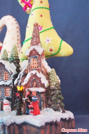 В нашем поселке существует традиция - украшать главную елку поделками, выполнеными руками детей. Каждый год проводится конкурс "Зимняя сказка". В этом году мы с дочей решили принять участие в этом конкурсе и сделали вот такую елочку Наша поделка попала в число лучших работ и теперь красуется на главной елке поселка. А это сама елка И так эе традиционный ледовый городок