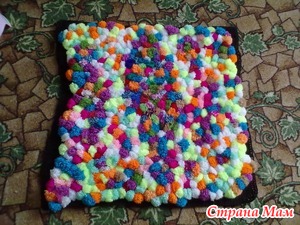 Вот моё творение но пока что незаконченное, кеоврик из помпонов на филейной сетке, осталось чуть чуть помпонов сделать и на заднюю часть что то сделать что бы не скользил коврик. Думаю закончит его скоро, и наверно на продажу выставлю, может кто и купит