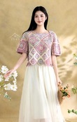 Разноцветный топ из мотивов наверняка понравится поклонницам стиля этно. А связать его сможет даже начинающая рукодельница.