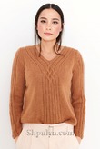 Вам потребуется: пряжа (60% овечьей шерсти, 40% пуха опоссума; 128 м/50 г) — 350 (400) 450 г светло-коричневой; круговые спицы № 4 и 4,5.