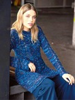 Роскошное теплое платье с центральным мотивом, и связанными широкой полупатентной резинкой рукавами и карманами. Платье выполнено из мягкой пряжи на основе овечьей шерсти ангоры в голубом цвете.