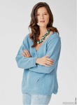 Для вязания нам потребуется 450 (500) 550 г пастельно-бирюзовой (цвет № 22) пряжи LANA GROSSA "Solo Lino": 80% вискоза, 20% лён; 120 м/50 г.