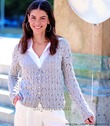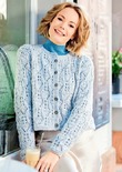 Этот кардиган состоит из левой и правой передних частей, спинки, рукавов, вязаных деталей, которые соединяются вместе, связанных крючком краев и украшений. Сначала вяжите переднюю и заднюю части, а также рукава по отдельности. Затем соедините вязаные детали. Затем обвяжите крючком соответствующие участки. Наконец, изготовьте и пришейте украшения.