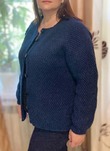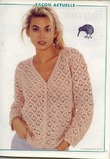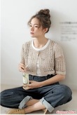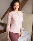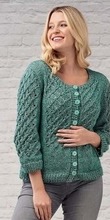 Этот кардиган состоит из левой и правой передних частей, спинки, рукавов, вязаных деталей, которые соединяются вместе, связанных крючком краев и украшений. Сначала вяжите переднюю и заднюю части, а также рукава по отдельности. Затем соедините вязаные детали. Затем обвяжите крючком соответствующие участки. Наконец, изготовьте и пришейте украшения.