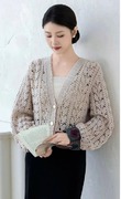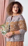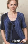 Жакет Manon вяжется узором «мох» поворотными рядами сверху вниз.
