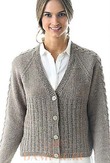 Вам потребуется: пряжа (70% овечьей шерсти, 30% шерсти яка; 120 м/50 г) – 550 (600) 650 г ягодной; спицы № 3,5 и 4,5; круговые спицы № 3,5; 10 пуговиц диаметром 22 мм.