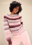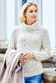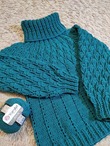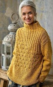 • Техника вязания: Свитер вяжется сверху вниз целиком, комбинируя вязание спицами и крючком.