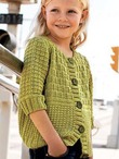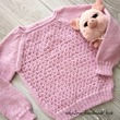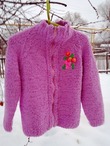 Стандартный реглан сверху, вывязан росток на 5 поворотов с каждой стороны, застежка на спинке полностью до низа