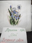Надо закрыть свои долговые отчеты. В мае месяце темой были весенние цветы. Выбор пал на схему от Дименсионс "Ирисы". Схему скачала в интернете, нитки подбирала сама из своих запасов.